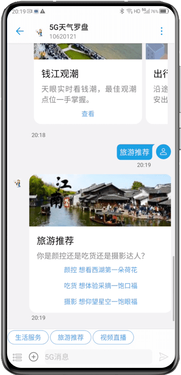 5G消息是对传统短信的全新升级,可通过手机一键开启。支持在原生短信界面发送多种内容,如语音、视频、图片、地理位置等
